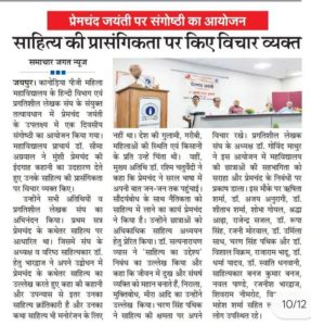 - 31 जुलाई 2024 प्रेमचंद जयंती के उपलक्ष में 'एक दिवसीय राष्ट्रीय संगोष्ठी' प्रगतिशील लेखक संघ व हिन्दी विभाग के संयुक्त तत्वावधान में आयोजित।