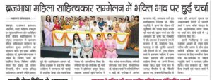 - 11सितंबर, एक दिवसीय ब्रजभाषा महिला साहित्यकार सम्मेलन एवं अंतरराष्ट्रीय संगोष्ठी "ब्रजभाषा साहित्य माँहिं कृष्ण भक्ति सम्प्रदायन कौ योगदान अरु बिनके अंत: अनुशासनिक संदर्भ"