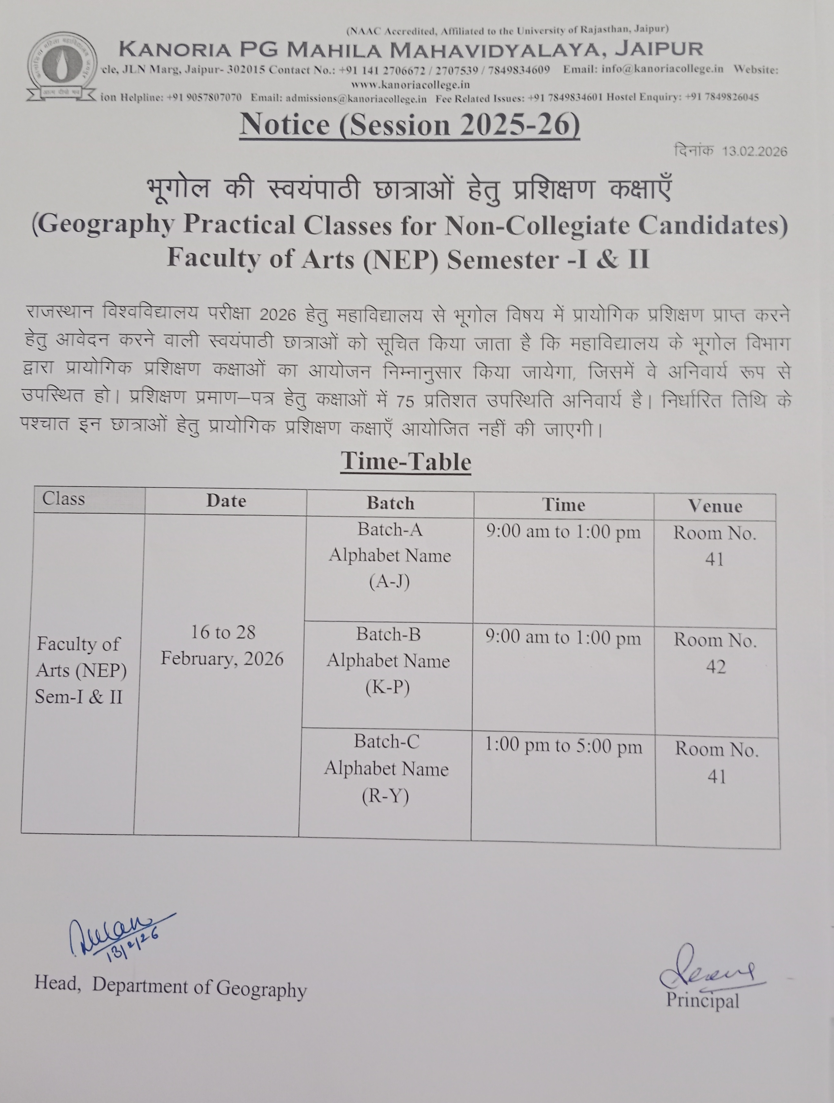 Geography Practical Classes for Non Collegiate Candidates of B.A. and B.Sc. Part-I, II and III for UoR Exam 2023 (Notice and Time Table).jpg