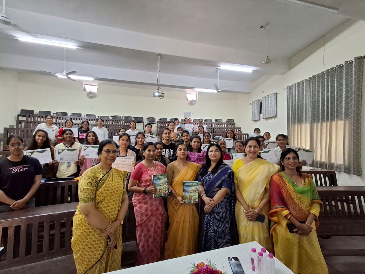 कानोड़िया पी.जी. महिला महाविद्यालय, जयपुर के रसायन विज्ञान विभाग द्वारा संचालित दो प्रमाण-पत्र पाठ्यक्रमों ‘‘इंस्ट्रुमेंटल टेक्नीक्स फॉर केमिकल एनालिसिस तथा सॉलिड वेस्ट मैनेजमेंट एंड क्लाइमेट चेंज’’ के सफल समापन उपरांत दिनांक 16 अप्रैल, 2026 को प्रमाण-पत्र वितरण कार्यक्रम का आयोजन किया गया। इस अवसर पर छात्राओं को प्रमाणपत्र के साथ पुरस्कार भी प्रदान किए गए तथा उनके उज्ज्वल भविष्य के लिए शुभकामनाएँ दी गईं। कार्यक्रम में महाविद्यालय प्राचार्य डॉ. सीमा अग्रवाल एवं उप-प्राचार्य डॉ. रंजना अग्रवाल (अकादमिक) की गरिमामयी उपस्थिति रही। प्राचार्य महोदया ने अपने संबोधन में कौशल आधारित शिक्षा के महत्व पर प्रकाश डाला। रसायन विज्ञान विभाग द्वारा संचालित इन पाठ्यक्रमों का उद्देश्य छात्राओं को आधुनिक वैज्ञानिक तकनीकों, पर्यावरण संरक्षण एवं व्यावहारिक ज्ञान से समृद्ध करना रहा। कार्यक्रम का आयोजन प्रमाण-पत्र पाठ्यक्रमों की संयोजक एवं विभागाध्यक्ष डॉ. निधि गुप्ता के मार्गदर्शन में सफलतापूर्वक संपन्न हुआ।