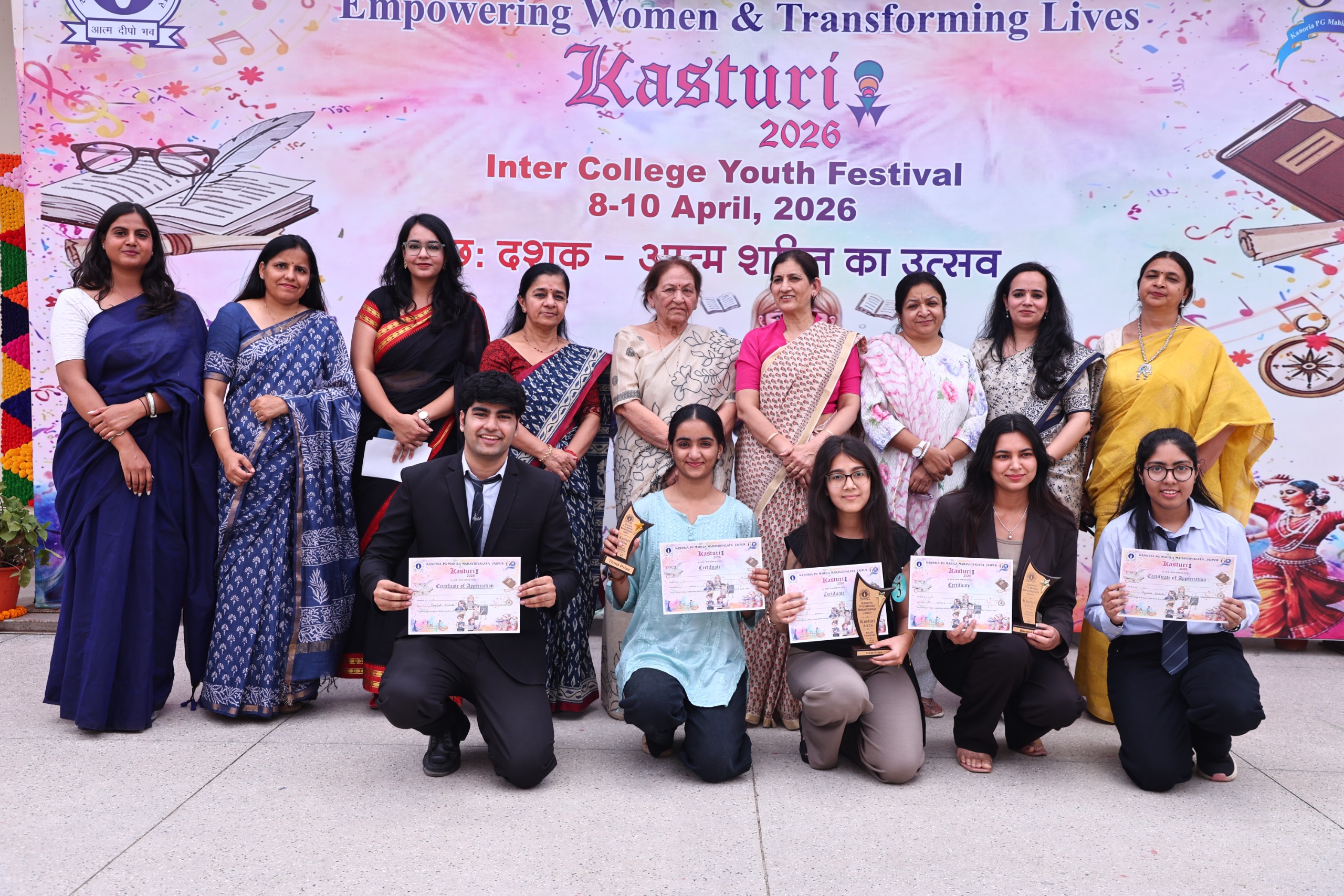 कानोड़िया पीजी महिला महाविद्यालय में 8 अप्रैल, 2026 को युवाओं के बहुप्रतीक्षित ’अन्तर महाविद्यालय युवा महोत्सव कस्तूरी- 2026 (8 से 10 अप्रैल) का शुभारम्भ हुआ। कार्यक्रम का उद्घाटन डॉ. प्रेरणा अरोड़ा, प्रोफेसर एंड डायरेक्टर, रोड सेफ्टी मैनजमेंट, डिपार्टमेंट ऑफ कॉर्मस एंड मैनजमेंट निर्वाण विश्वविद्यालय, जयपुर ने किया। मुख्य अतिथि, महाविद्यालय की पूर्व छात्रा डॉ. प्रेरणा अरोड़ा के साथ निदेशक, डॉ. रश्मि चतुर्वेदी, प्राचार्य, डॉ. सीमा अग्रवाल, उप-प्राचार्य (छात्र गतिविधि) डॉ. मनीषा माथुर एवं प्रबंध समिति सदस्य श्री विमल कुमार भाटिया ने दीप प्रज्वलन कर ’कस्तूरी-2026’ का शुभारम्भ किया। प्राचार्य डॉ. सीमा अग्रवाल ने स्वागत उद्बोधन में कहा कि सह-शैक्षणिक गतिविधियाँ विद्यार्थियों के व्यक्तित्व और चरित्र निर्माण में अत्यंत महत्वपूर्ण भूमिका निभाती हैं तथा ऐसे आयोजन उनके कौशल, आत्मविश्वास और रचनात्मकता को विकसित करने का अवसर प्रदान करते हैं। कार्यक्रम में महाविद्यालय की छात्राओं के नव्य नारी ग्रुप ने स्वागत नृत्य प्रस्तुति दी। मुख्य अतिथि डॉ. प्रेरणा ने महाविद्यालय से जुड़े विद्यार्थी जीवन के अनुभव साझा किये और उन्होंने सड़क सुरक्षा के विषय में विस्तार से चर्चा की तथा समझाया कि ट्रेफिक नियमों का पालन करना क्यों आवश्यक है। महाविद्यालय निदेशक डॉ. रश्मि चतुर्वेदी ने इस समारोह के शुभारंभ की औपचारिक घोषणा की। उन्होंने कस्तूरी की थीम ’’छःदशक-आत्म शक्ति का उत्सव’’ के बारे में बताते हुए आत्मशक्ति के महत्व पर प्रकाश डाला। उन्होंने यह भी बताया कि वर्षों से यह उत्सव युवा छात्राओं को अपनी प्रतिभा प्रदर्शित करने के लिए एक सशक्त मंच प्रदान करता आ रहा है। अंत में छात्रा इशिका गोयल ने धन्यवाद ज्ञापित किया। उद्घाटन कार्यक्रम का संचालन डॉ. टीना सिंह भदौरिया एवं छात्रा कशिश गौड़ व माही असीजा ने किया। कस्तूरी के पहले दिन अंतर महाविद्यालय प्रतियोगिताओं के अतंर्गत ’मन के हारे हार है, मन के जीते जीत’ विषय पर हिन्दी तर्क-वितर्क प्रतियोगिता में राजस्थान कॉलेज से इंद्रजीत सिंह प्रथम, कानोड़िया कॉलेज से पूजा राठौड़ द्वितीय और सुबोध पीजी महिला महाविद्यालय से अक्षिता शर्मा तृतीय स्थान पर रहे। नुक्कड़ नाटक प्रतियोगिता में यूनिवर्सिटी महाराजा कॉलेज की टीम प्रथम व कानोड़िया कॉलेज की टीम द्वितीय स्थान पर रही। बीट्स-वेस्टर्न गु्रप डांस प्रतियोगिता में जईसीआरसी की टीम प्रथम व कानोड़िया कॉलेज की टीम द्वितीय रही। अतः महाविद्यालय प्रतियोगिताओं में फ्लावर अरेंजमेंट में अदिती जांगिड़ व तनुश्री प्रथम, द्राक्षा असांरी व साइमून असांरी द्वितीय रही। रंगरीति के अंतर्गत रंगोली में दृष्टि मीणा प्रथम व