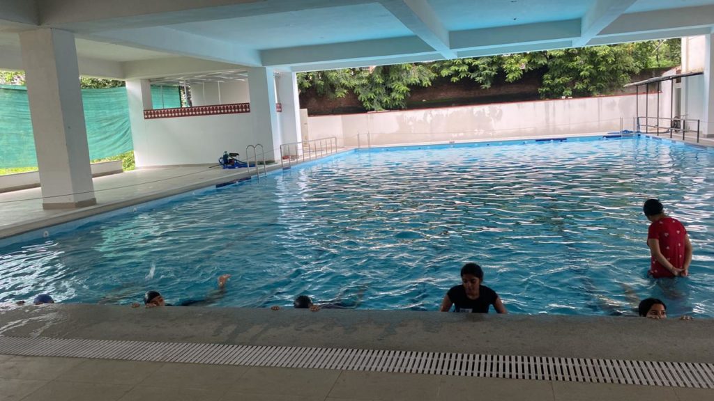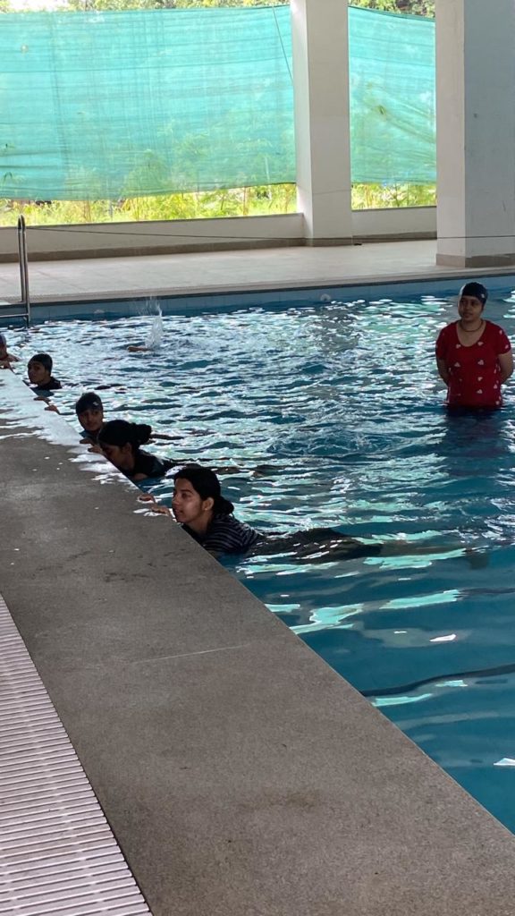 The college has a clean swimming pool with an automatic filteration plant and a qualified female coach to train the students.